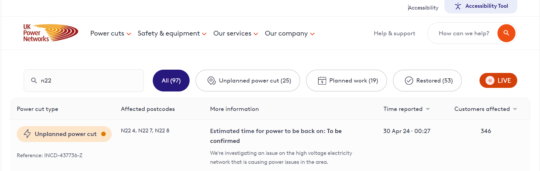 UK Power Networks run all the power lines in the UK. Much like NRS they had an unplanned emergency. An unexpected power cut, acording to UKPN this was reported/noticed at