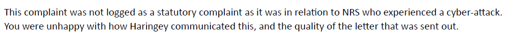 This response is LATE. It required myself to chase multiply times in multiply ways. It is important to note that at no point did anyone fromHaringey Council