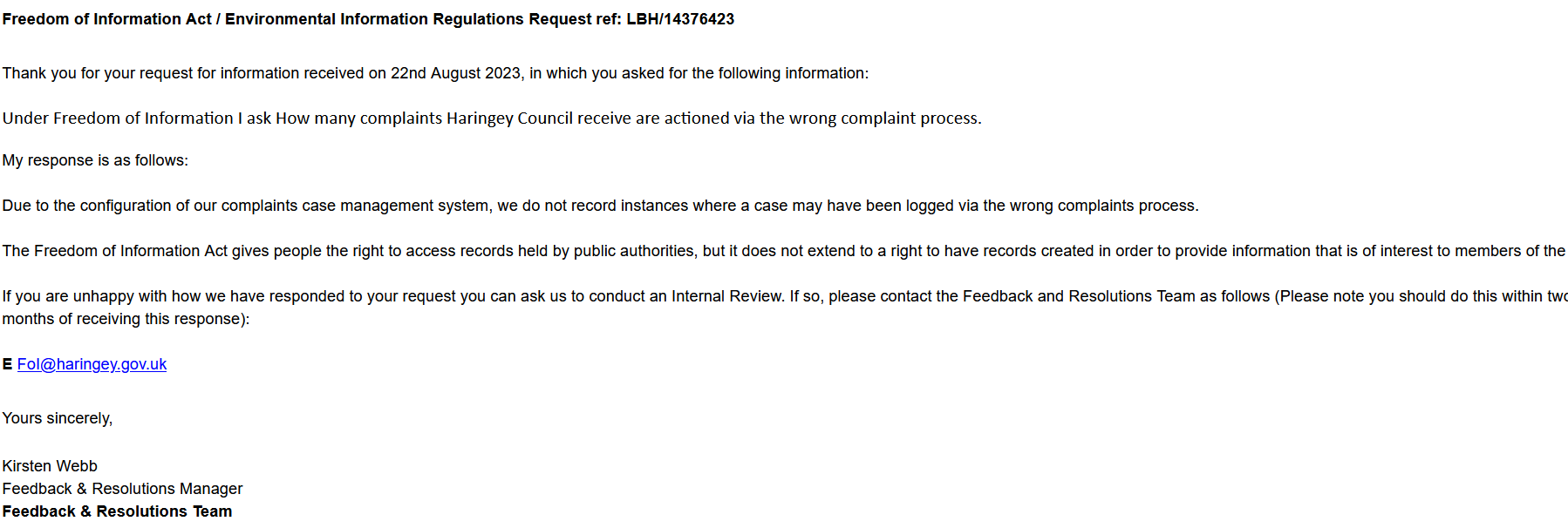 Freedom of Information LBH/14376423